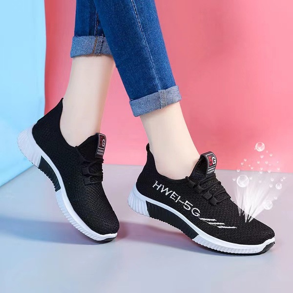 New Spring, Summer and Autumn All-match Women's Single-layer Shoes Flat Soft-soled Shoes Korean Style Fashionable Casual Fly-woven Sports Running Shoes