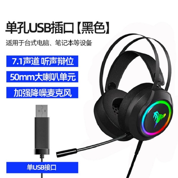 Headphones wired head-mounted gaming computer notebook universal headset RGB luminous eating chicken e-sports headset wholesale