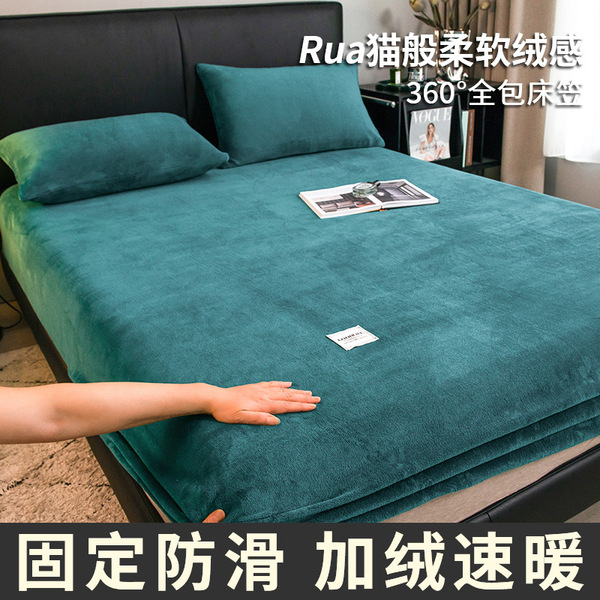Winter crystal velvet bed sheet single piece plus velvet thickened milk velvet bed sheet bedspread protective cover student dormitory three-piece set